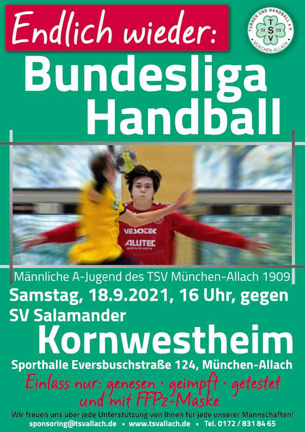 Endlich wieder Handball: Die aktuellen Coronaregeln erlauben es, Zuschauer in die Eversbuschhalle einzulassen. Damit kann der Bundesliga-Saison-Auftakt der A-Jugend vor Publikum am 18.9. um 16 Uhr stattfinden.