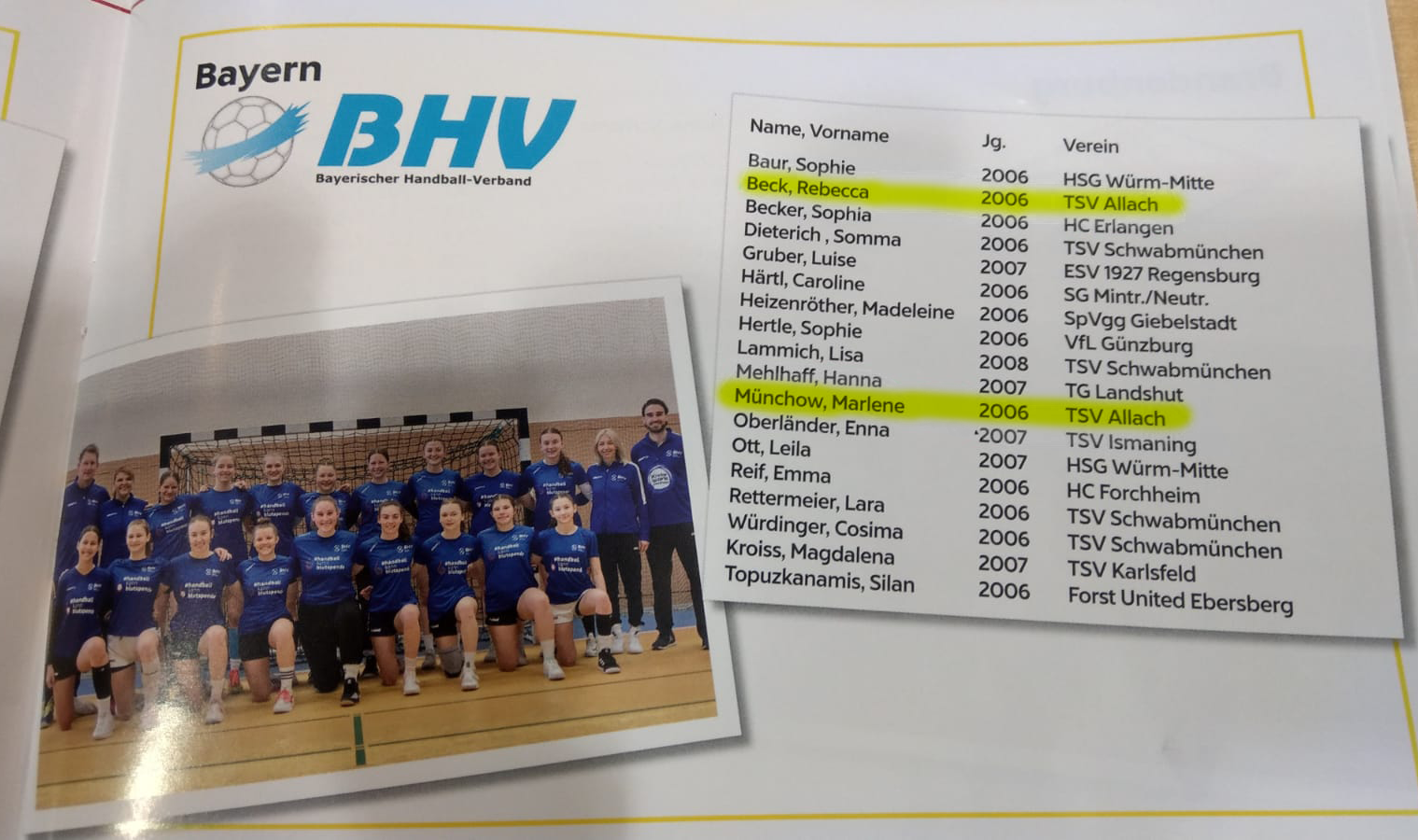Dieses Jahr sind für den BHV Rebecca und Marlene mit dabei. Beide spielen in der wB1 und wir wünschen unseren Allachern Madln viel Glück in Sindelfingen.