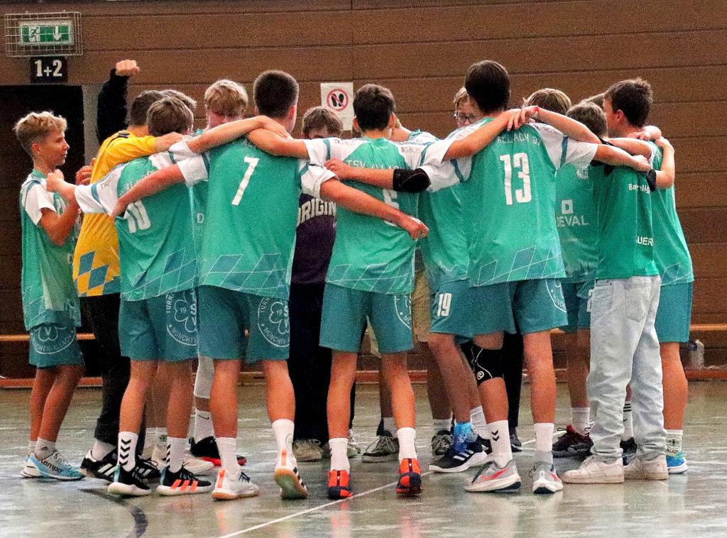 Nach einigen technischen Fehlern und Ballverlusten kamen allerdings die Gäste nochmals heran und die Schlussphase wurde spannend. Nachdem ein Allacher Spieler eine rote Karte bekommen hatte, musste die Mannschaft sich noch einmal neu formieren. In der letzten Spielminute war der Vorsprung auf ein Tor geschrumpft – diesen ließen die Jungs sich schließlich aber nicht mehr nehmen, so dass das Duell mit 29:28 siegreich beendet wurde.